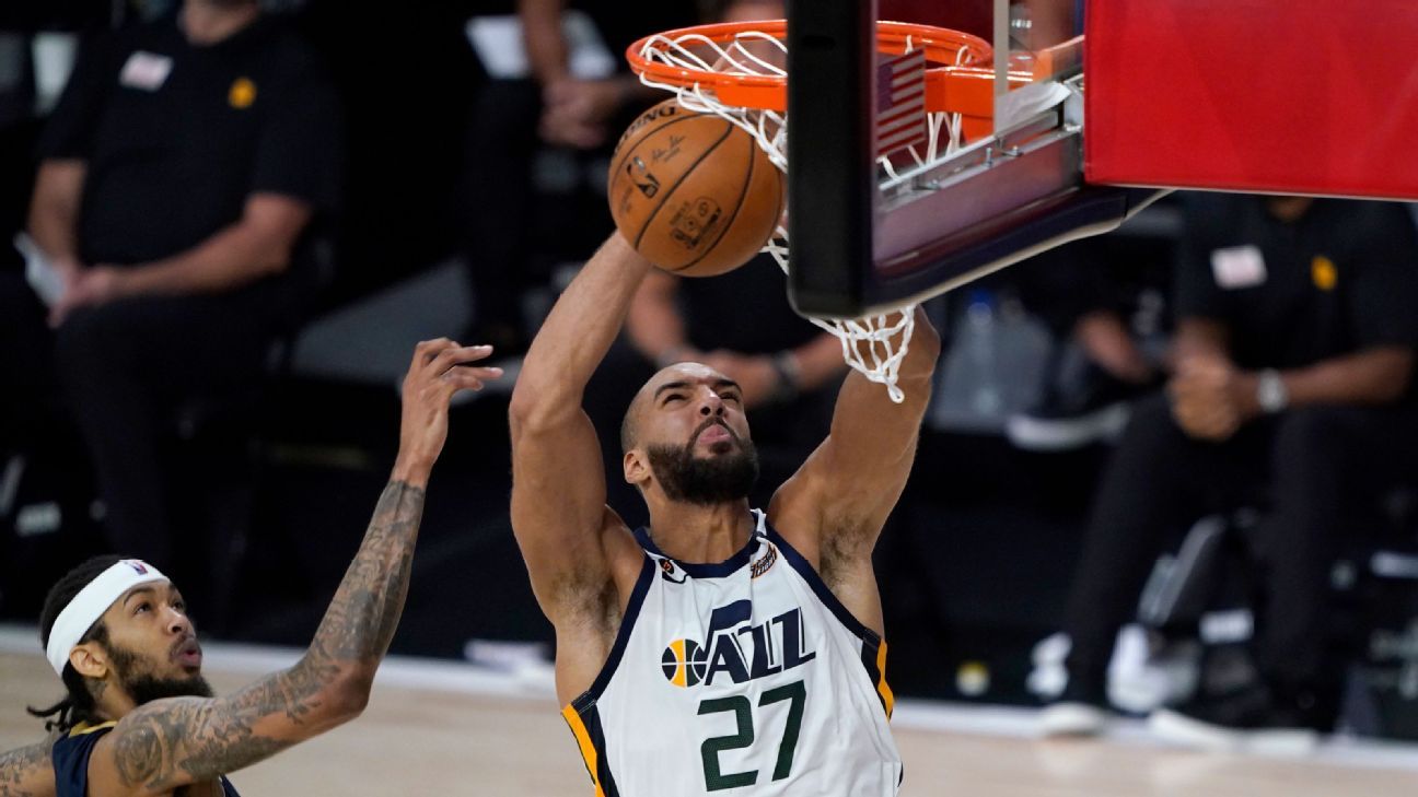 Rudy Gobert, Donovan Mitchell combine forces, fittingly lead Jazz in NBA's restart - ESPN